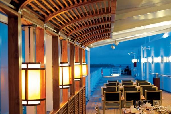 Dine al fresco or enjoy wraparound ocean views from the dining room of La Veranda, where we offer an ever-changing selection of buffet breakfast and lunch items and a la carte options, many of which are inspired by the destinations we visit. In the evening, La Veranda is transformed to a reservation-only dining venue.